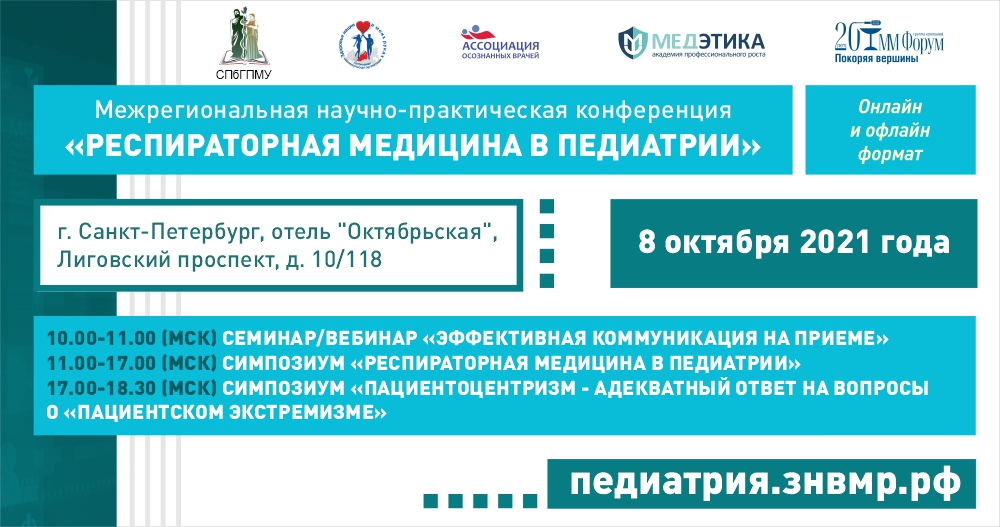 По инициативе АНО "Здоровье нации в моих руках", при поддержке ФГБОУ ВО "Санкт-Петербургский государственный педиатрический университет Минздрава России", состоится Межрегиональная научно-практическая конференция «Респираторная медицина в педиатрии»