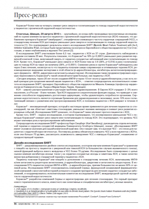 Пресс-релиз - Научно-практический журнал Cardioсоматика Том 1, №1 (2010)