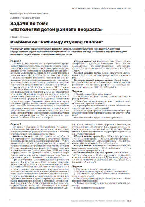 Рубрику ведут доктор медицинских наук, профессор И.Н. Холодова, кандидат медицинских наук, доцент Ю.А. Дмитриева,