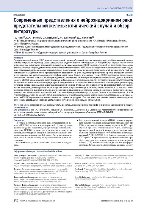 Чиж Г.А., Тютрина Ю.А., Проценко С.А., Джелялов Э.С., Латипова Д.Х. Современные представления о нейроэндокринном раке предстательной железы: клинический случай и обзор литературы. Современная Онкология. 2022;24(2):242–249. DOI: 10.26442/18151434.2022.2.201242