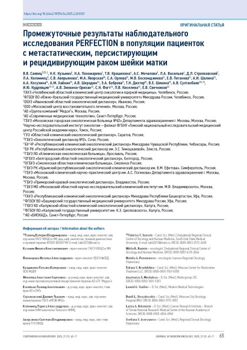 Промежуточные результаты наблюдательного исследования PERFECTION в популяции пациенток с метастатическим, персистирующим и рецидивирующим раком шейки матки