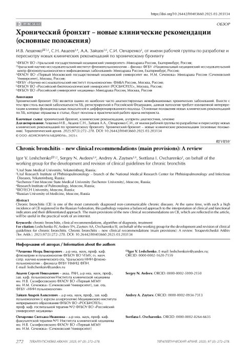 И.В. Лещенко*1,2, С.Н. Авдеев3,4, А.А. Зайцев5,6, С.И. Овчаренко3, от имени рабочей группы по разработке и пересмотру новых клинических рекомендаций по хроническому бронхиту