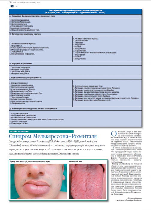 Синдром Мелькерссона–Розенталя. Участковый терапевт. 2012; 4: 38.