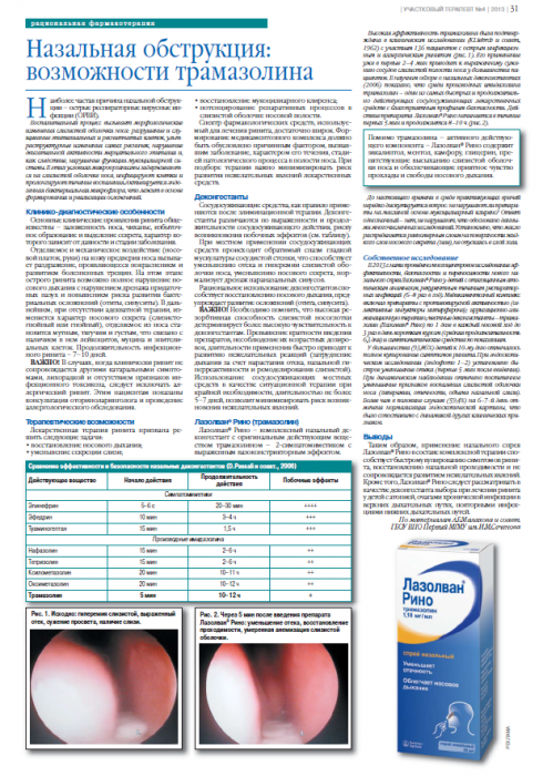 А.Б.Малахов и соавт. Назальная обструкция: возможности трамазолина. Участковый терапевт. 2013; 4: 31.