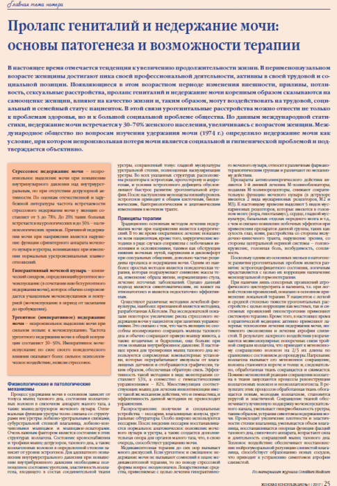 Пролапс гениталий и недержание мочи: основы патогенеза и возможности терапии
